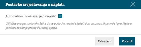 Ako smo se odlučili za ručno izvještavanje o naplati, tu kvačicu je potrebno ukloniti i promjene spremiti klikom na Potvrdi.