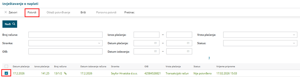 - Označimo zapise koji su označeni zelenom bojom koje želimo potvrditi