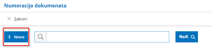 - U izborniku Postavke organizacije odaberemo Numeracija dokumenata i kliknemo Novo