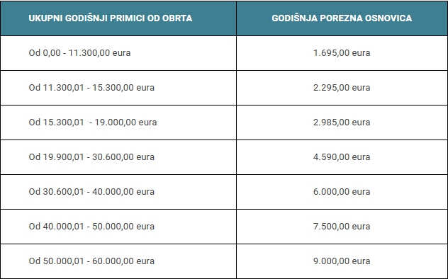 Iznos mjesečnog paušalnog poreza na dohodak računa se prema paušalnim razredima za 2025., a predujam za 2026. godinu izračunava se uz primjenu stope poreza na dohodak od 12%.