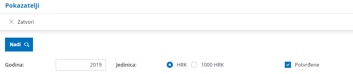 Kod prikaza pokazatelja možete odrediti hoćete li uzeti u obzir sve temeljnice, čak i one neproknjižene, ili ćete uzeti u obzir samo proknjižene temeljnice. Kvačica u prozoru Potvrđene znači da će se uzeti u obzir samo proknjižene temeljnice.