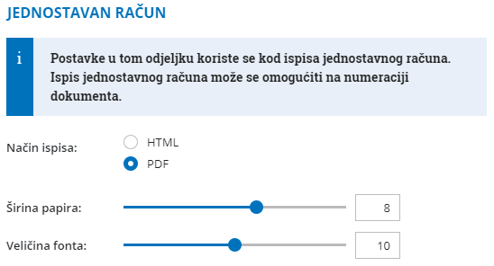 Postavke za Jednostavan račun upotrijebimo samo ako upotrebljavamo Fiskalnu blagajnu i ispis na Pos printeru.