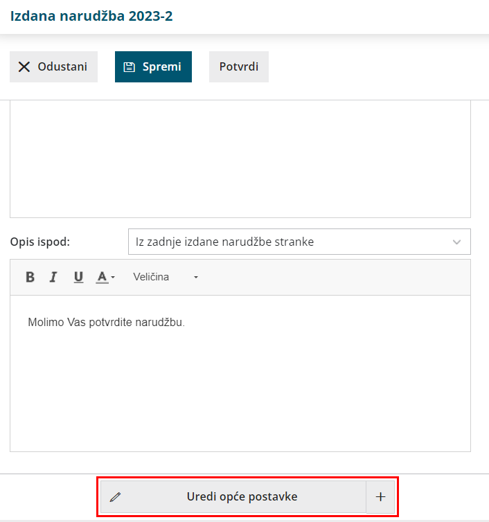 Uređivanje ispisa izdane narudžbe direktno u dokumentu