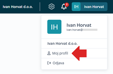 - U gornjem desnom kutu otvorimo izbornik klikom na svoje ime, a zatim odaberemo Moj profil.