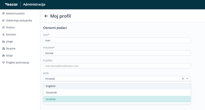 Ako želimo promijeniti jezik na portalu Yescor, potrebno je slijediti ove korake: