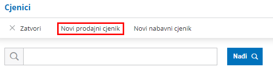 - U izborniku Šifrarnici > Cjenici > Novi prodajni cjenik.