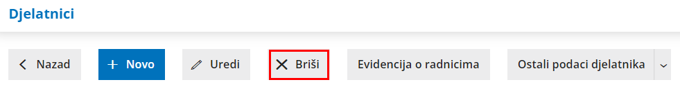 - PAŽNJA: Šifrarnik djelatnika povezan je s ostalim dijelovima programa, tako da je brisanje moguće samo ako osoba nije povezana ni s jednim obračunom.