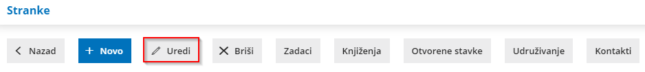 U slučaju da želimo urediti podatke na već postojećoj stranci, klikom na Uredi možemo uređivati podatke.