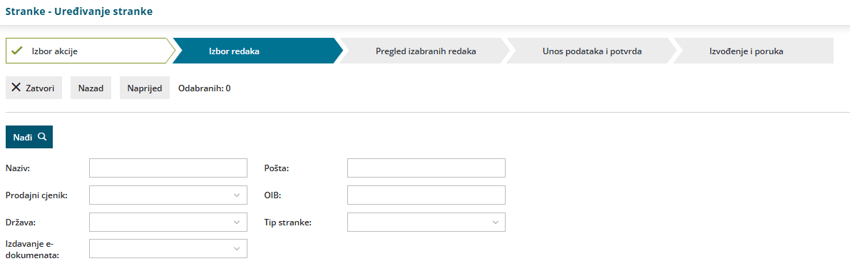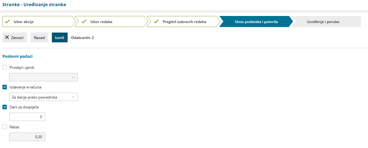- Klikom na Izvrši na odabranim se strankama evidentiraju odabrane promjene.